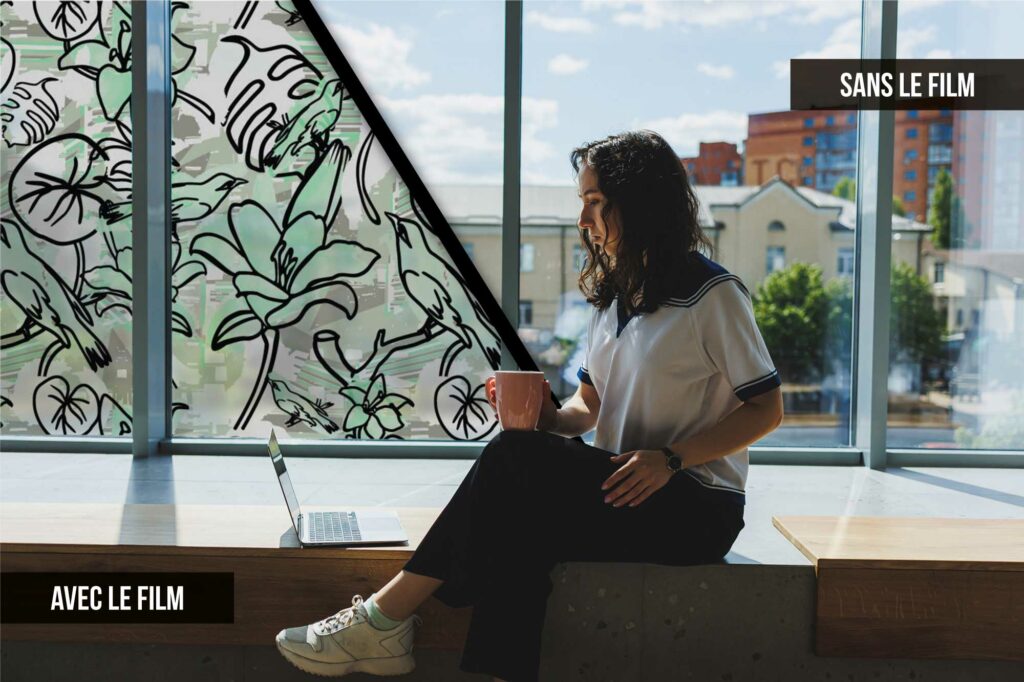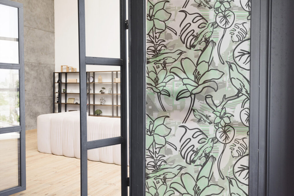 Choisissez cet adhésif dépoli camouflage avec motifs d’oiseaux et végétation pour donner un style unique à vos vitrages, tout en assurant la discrétion de vos espaces et en laissant entrer la lumière naturelle.