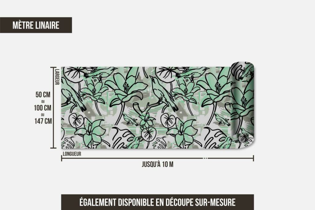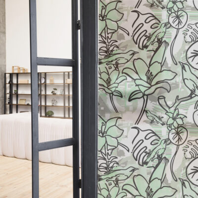 Le design unique de ce film associe des silhouettes d’oiseaux et des motifs de végétation délicatement posés sur un fond aux teintes de camouflage, avec des nuances subtiles de vert, gris et noir. Ce motif offre un style à la fois contemporain et organique, idéal pour ceux qui recherchent un effet visuel captivant et original dans leur intérieur ou extérieur. Ce film transforme instantanément vos fenêtres, portes vitrées, cloisons et même vos meubles en verre en éléments décoratifs tendance, tout en assurant une protection contre le vis-à-vis.
