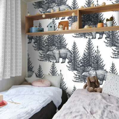 stickers muraux intissé motif ours forêt personnalisé moins cher mobil home