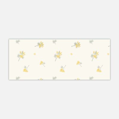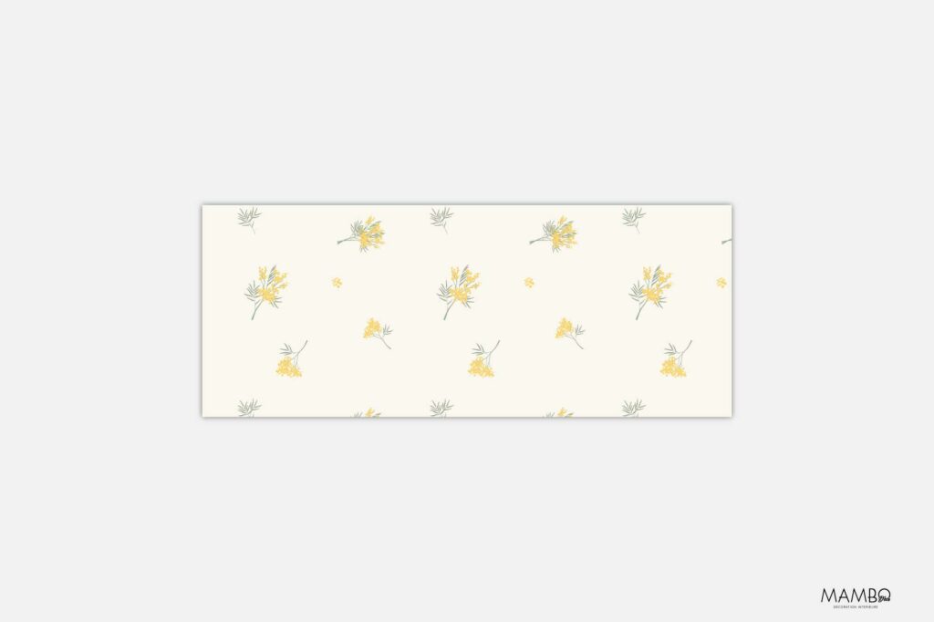 Le motif présente de petits rameaux de mimosa finement dessinés. Ils se détachent sur un fond crème très doux. Les fleurs jaune pastel, associées à un feuillage vert sauge, créent un effet de fraîcheur et de douceur. Cet habillage de split motif floral est parfait pour les intérieurs d’inspiration bohème, japandi ou campagne chic. Il fonctionne particulièrement bien dans une chambre claire, un salon cosy ou un bureau lumineux.