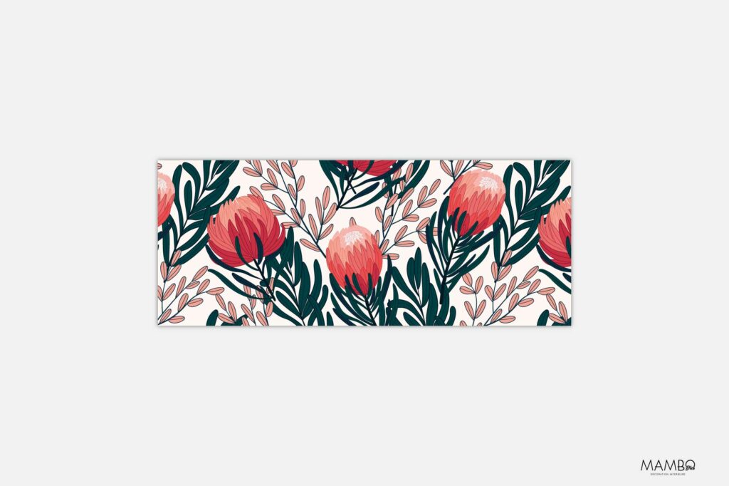 Apportez une touche sauvage et raffinée à votre intérieur grâce à cet autocollant décoratif clim florale inspiré par les paysages exotiques d’Afrique du Sud. Le motif met en scène la majestueuse protea, fleur emblématique, dans une palette vibrante mêlant corail, rose profond et vert forêt. Une alliance audacieuse entre délicatesse botanique et énergie végétale, parfaite pour transformer visuellement un split mural trop discret.