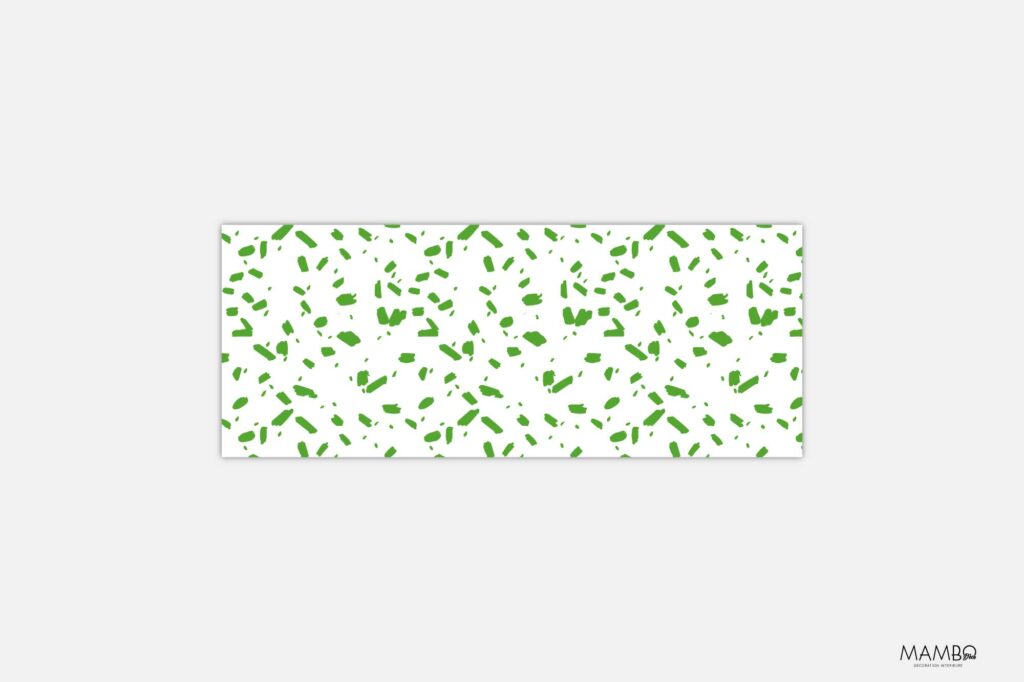 Le motif Zeste Graphique s’inspire du langage visuel du collage moderne. Sur un fond blanc crème, des fragments verts géométriques semblent danser librement. Le contraste entre la neutralité de l’arrière-plan et l’intensité végétale du vert crée un rendu à la fois graphique et aérien. Ce motif évoque la fraîcheur, la spontanéité, et rappelle les éclats de lumière filtrés à travers le feuillage d’un jardin stylisé.
