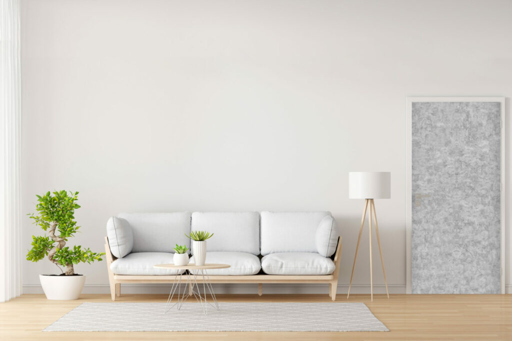 Apportez une touche urbaine et industrielle à votre décoration avec ce papier peint effet béton gris argent.