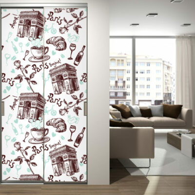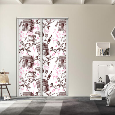 Tapisserie à encoller motif paris café France personnalisé pas cher bonne qualité porte de placard
