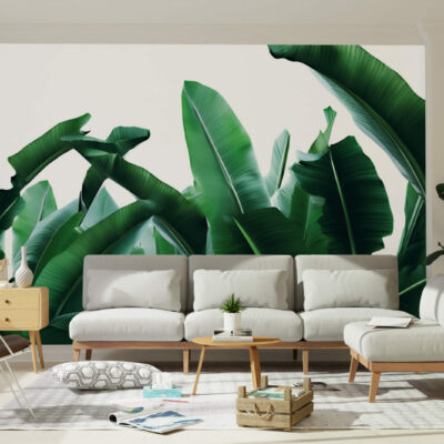 Transformez votre pièce en paradis tropical avec ce magnifique Papier peint feuilles Bananier. Avec une nature luxuriante, notre papier peint panoramique jungle met en valeur des plantes telles que les feuilles de bananier. Si vous aimez les plantes vertes, c’est le choix parfait pour étendre votre collection sur les murs.