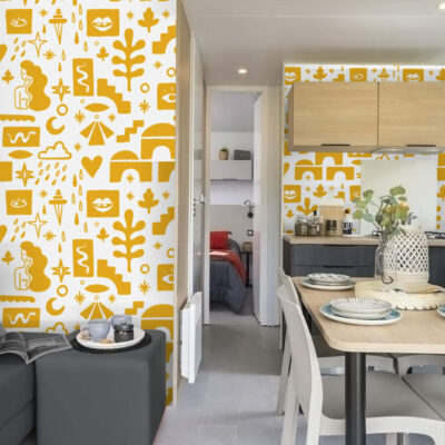 vente tapisserie autocollant boho modern art déco personnalisable qualitatif meilleur prix mobil-home pièce de vie+