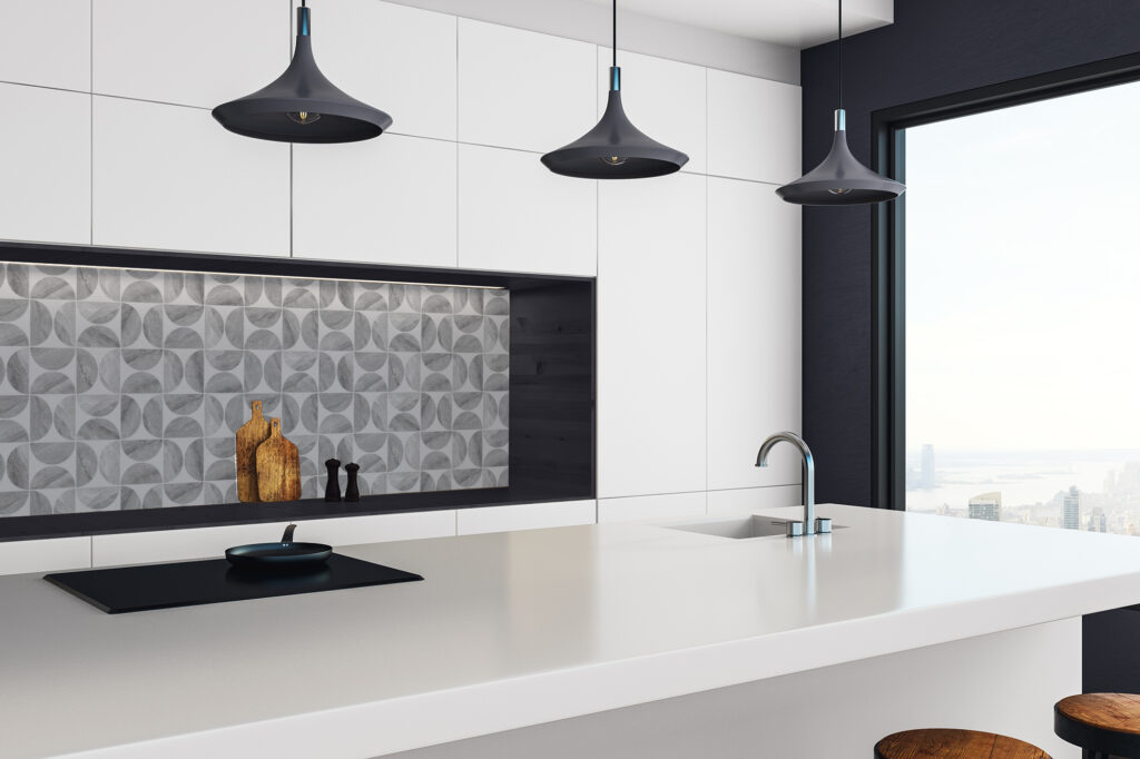 Optez pour une solution décorative qui allie design, facilité de pose et durabilité avec notre crédence effet pierre à motif géométrique.