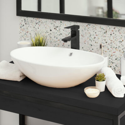 Avec la crédence autocollante Terrazzo, les possibilités sont infinies. En plus de s’adapter parfaitement aux cuisines de maison, elle convient également aux salles de bain et buanderies, où elle apporte un style unique tout en protégeant les murs. Son design tendance et sa facilité d’installation la rendent aussi idéale pour les mobil-homes, offrant une solution rapide et esthétique pour relooker l’intérieur.