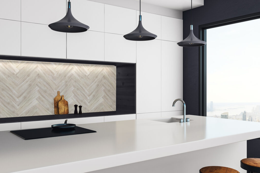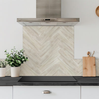 Crédence murale bois bâton rompu chêne clair – Auto-adhésive, résistante à la chaleur et facile d’entretien
