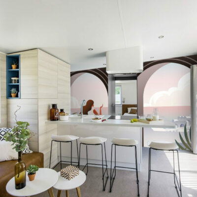 vente papier peint stickers mural imitation brique design industriel sur-mesure haut de gamme mobil-home cuisine+