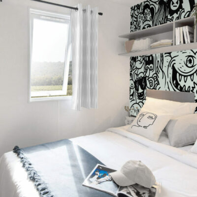 papier peint tendance style doodle rebelle haut de gamme mobil home - noir