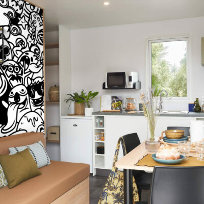 vente tapisserie autocollant boho modern art déco personnalisable qualitatif meilleur prix mobil-home pièce de vie+