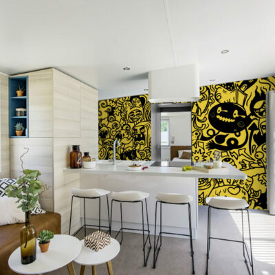 papier peint tendance style doodle rebelle haut de gamme mobil home- ocre