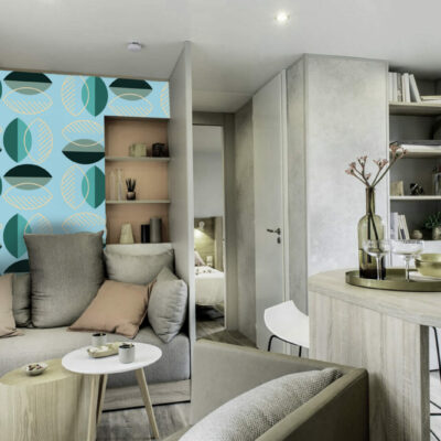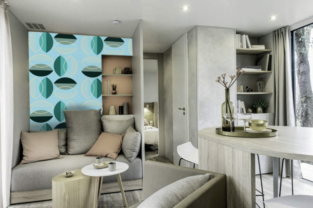 acheter papier vinyle imprimé mural géométrique rétro personnalisé abordable mobil-home salle de vie+