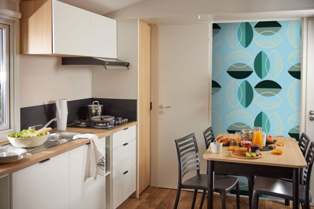 vente papier peint stickers mural imitation brique design industriel sur-mesure haut de gamme mobil-home cuisine+