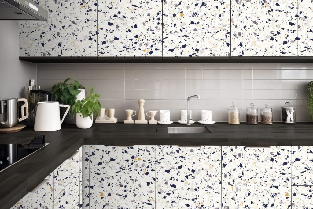 Grâce à ce Film adhésif Terrazzo Mixte Bleu, vous pourrez rénover de nombreuses surfaces pour apporter une nouvelle jeunesse à votre intérieure.