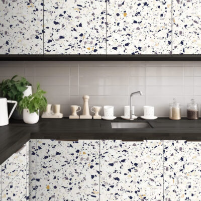 Découvrez dès maintenant ce magnifique Film adhésif Terrazzo Mixte Bleu, idéale pour un style sophistiqué et moderne. Son beau grain et sa texture vous séduiront, tout comme la facilité d’installation qui vous permettra de concrétiser de belles créations. Murs, plateaux de tables, chevets, cuisine, portes…