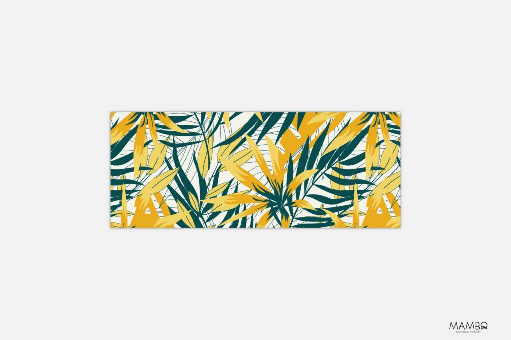 Osez la couleur et la vitalité avec ce film décoratif split tropical. Le motif flamboyant alterne des feuillages exotiques jaune soleil et vert intense sur un fond clair, créant un jeu graphique à la fois dense et lumineux. Idéal pour insuffler une ambiance estivale toute l’année, ce design donne du pep’s à n’importe quelle pièce sans tomber dans l’excès.