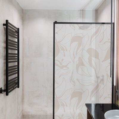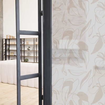 Apportez élégance et intimité à vos espaces avec notre film dépoli pour vitrage, décoré de magnifiques fleurs de lys abstraites.