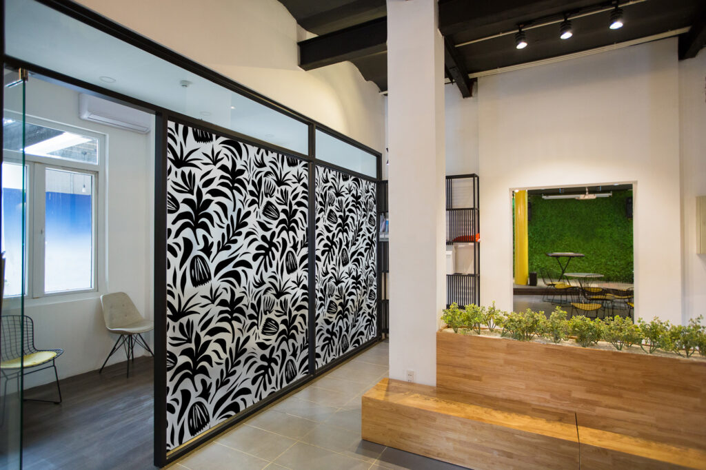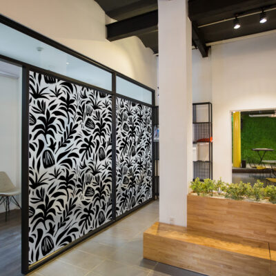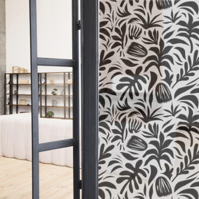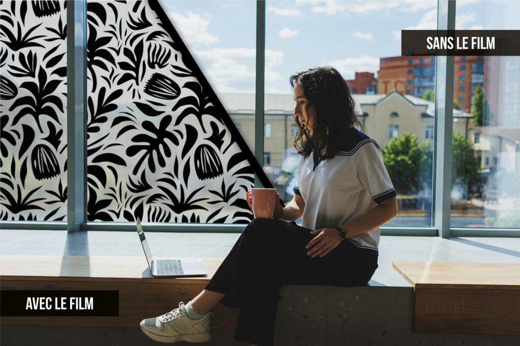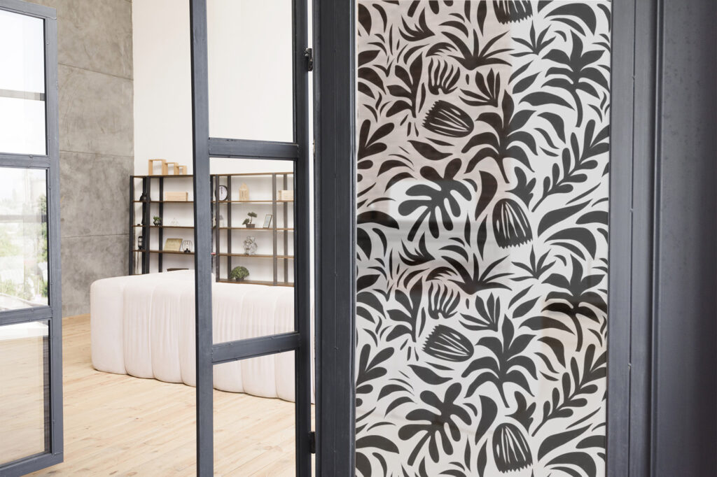 Optez pour notre film dépoli motif floral organique pour un vitrage à la fois fonctionnel et esthétique, idéal pour sublimer vos espaces tout en garantissant la confidentialité.