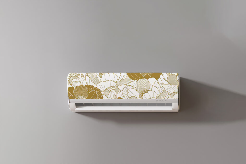 Sublimez votre unité intérieure avec notre habillage clim mural au motif aurum doré et floral. Expédié en rouleau sécurisé, prêt à poser.