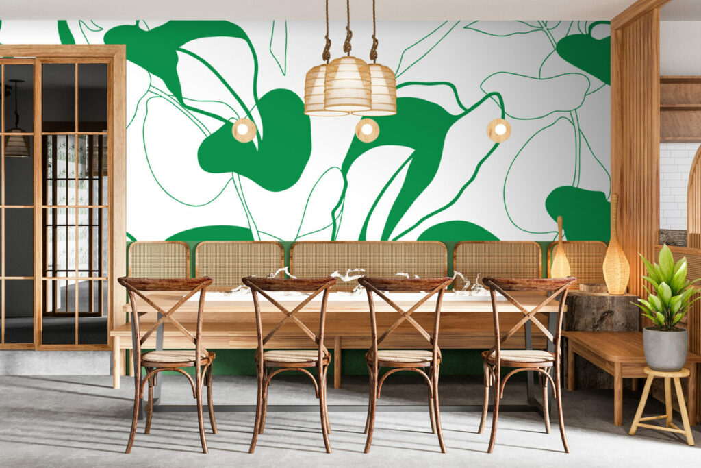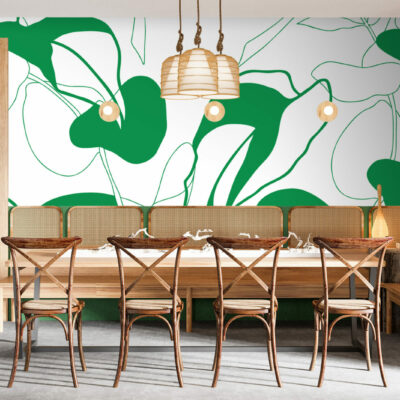 Apportez une touche d’exotisme et de fraîcheur à votre décoration avec notre papier peint au motif de grosses feuilles vertes sur fond de toile blanche. Inspiré par la beauté de la nature, ce design simple et élégant capture l’essence de l’expression florale, parfait pour transformer n’importe quel espace en un havre de paix tropical. Ce motif végétal crée une atmosphère apaisante et contemporaine, alliant la fraîcheur des nuances de vert à la pureté du blanc pour un effet visuel saisissant
