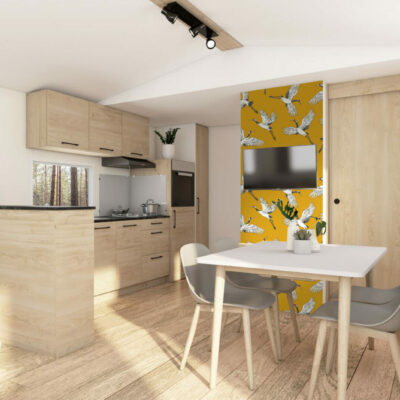 papier peint pré encollé grues japonisantes haut de gamme mobil home- jaune