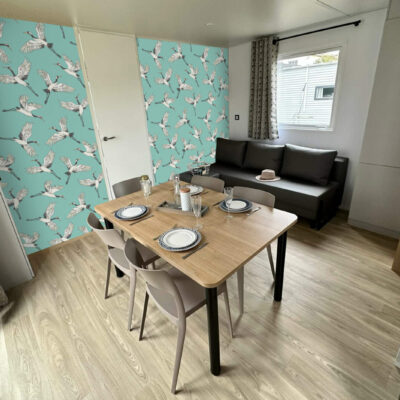 papier peint pré encollé grues japonisantes haut de gamme mobil home- vert