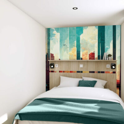 livraison gratuite papier peint mural repositionnable minimaliste imitation béton industriel personnalisable abordable mobil-home tiny house pièce de vie+
