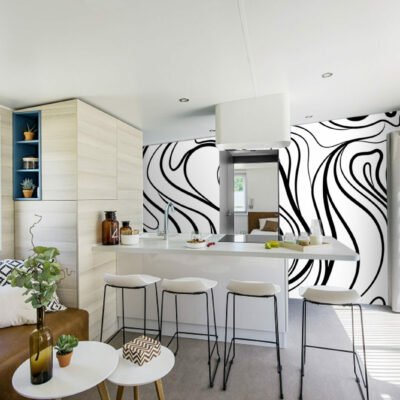 papier peint à encoller ligne abstraite moderne sur-mesure haut de gamme mobil home de camping -noir