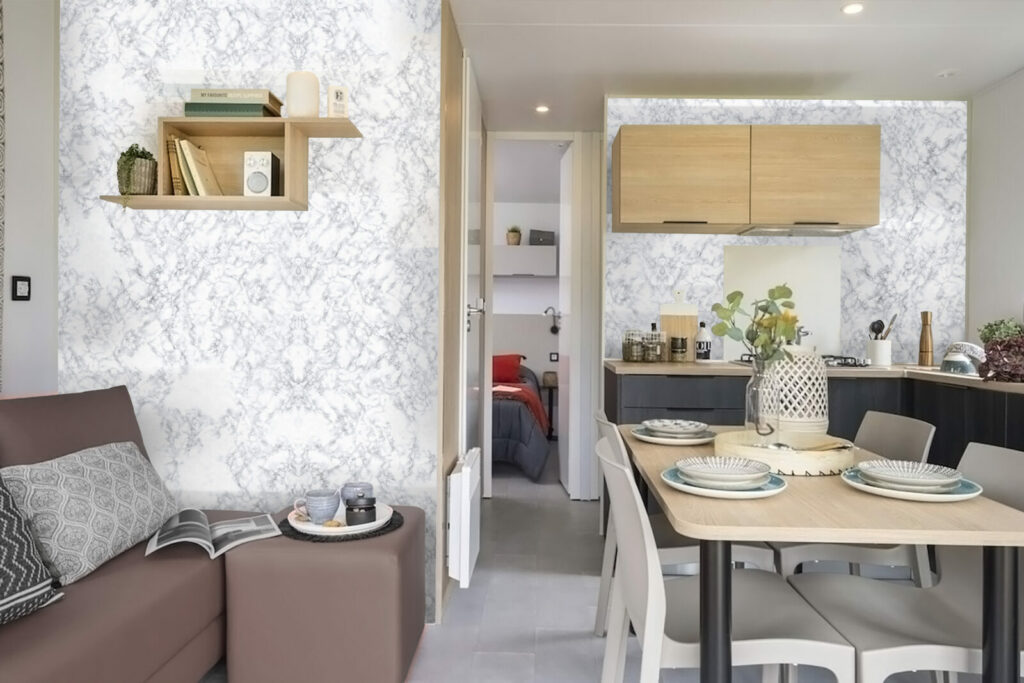 Pour créer une décoration 100% tendance et moderne, nous vous conseillons ce décor imitation marbre. Celui-ci est très élégant grâce aux détails réalistes.
