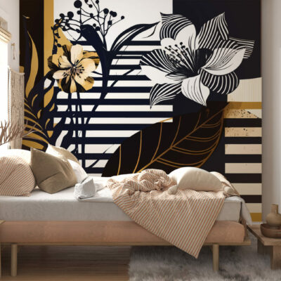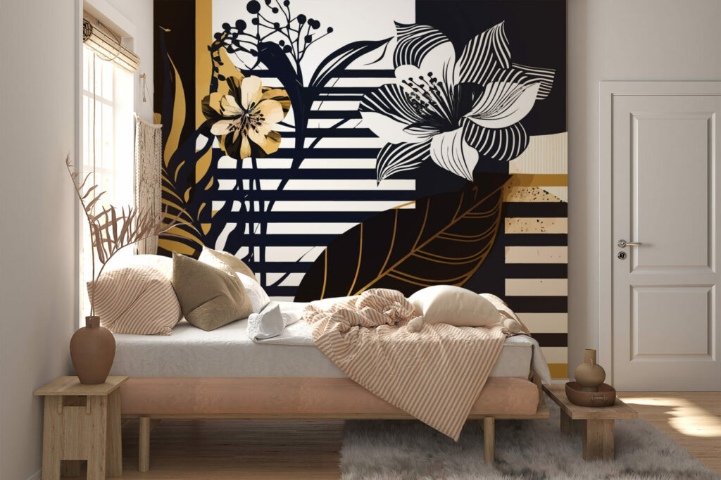 papier peint panoramique motifs japandi scandiboho végétal noir & blanc enfants géométrique vintage paysage wallpaper décoration murale décoration intérieur mobil-home