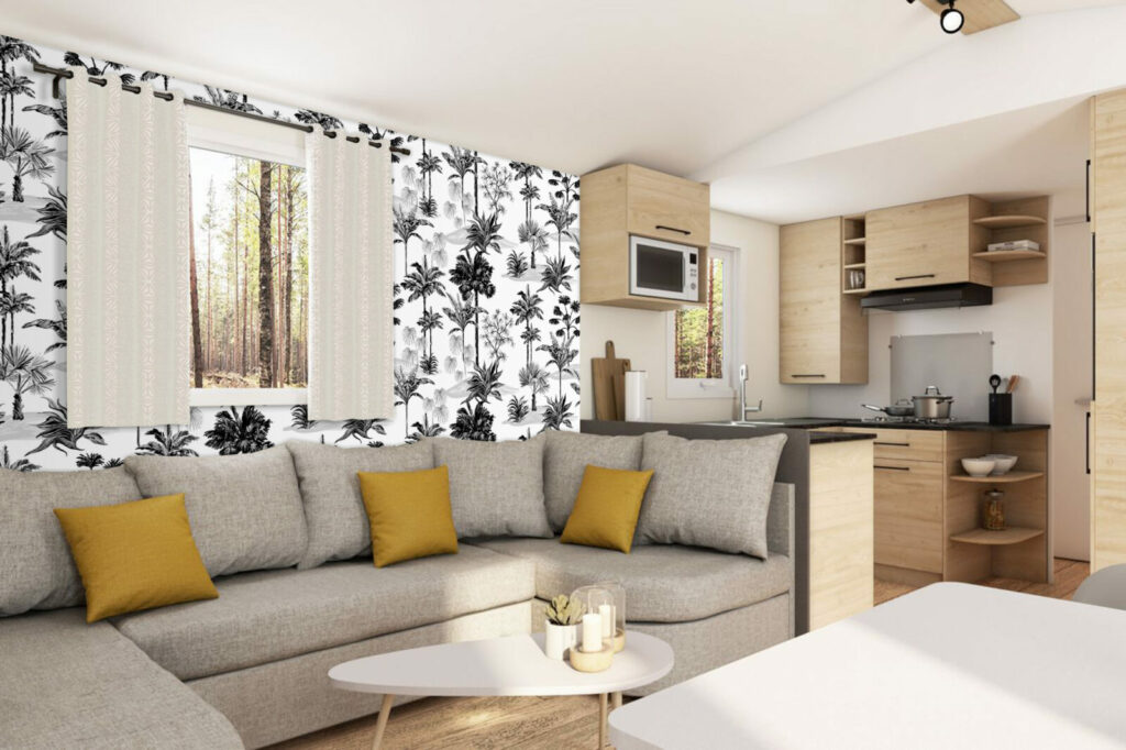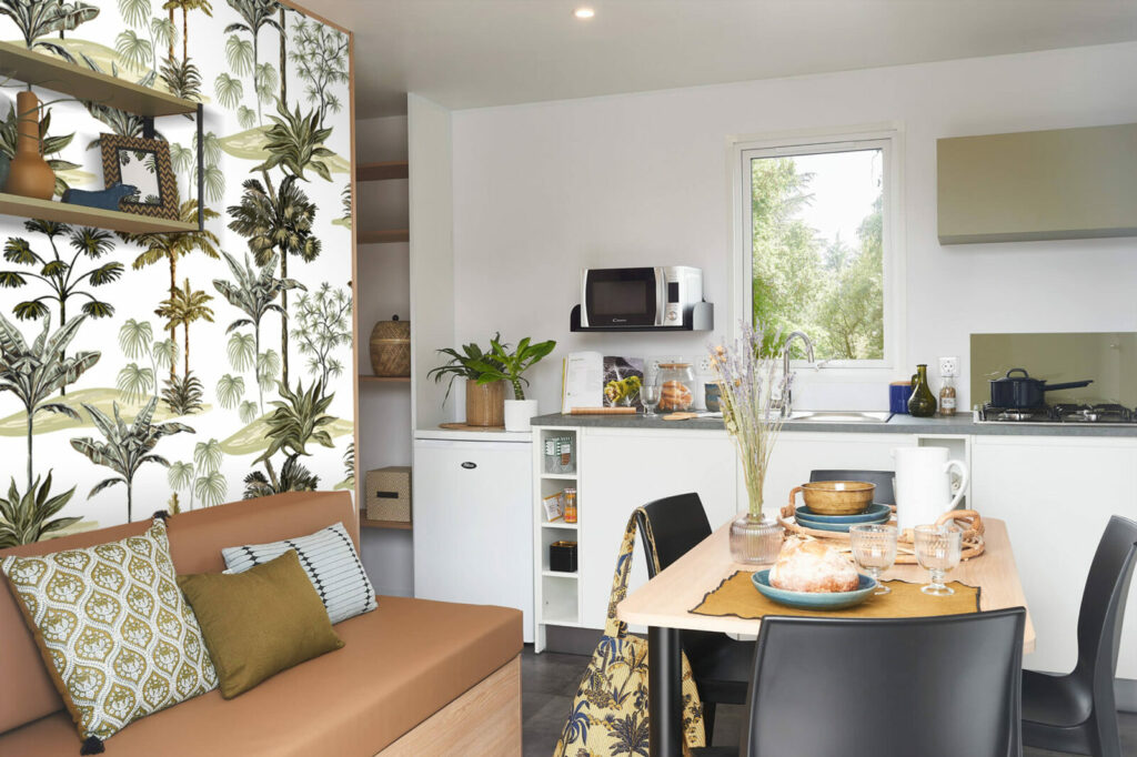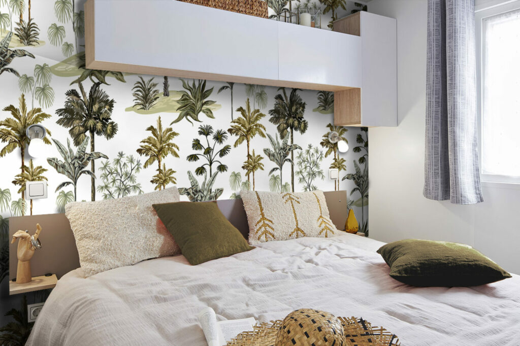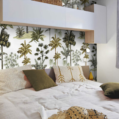 L’évasion est au rendez-vous avec ce papier peint recouvert de feuillages tropicaux.