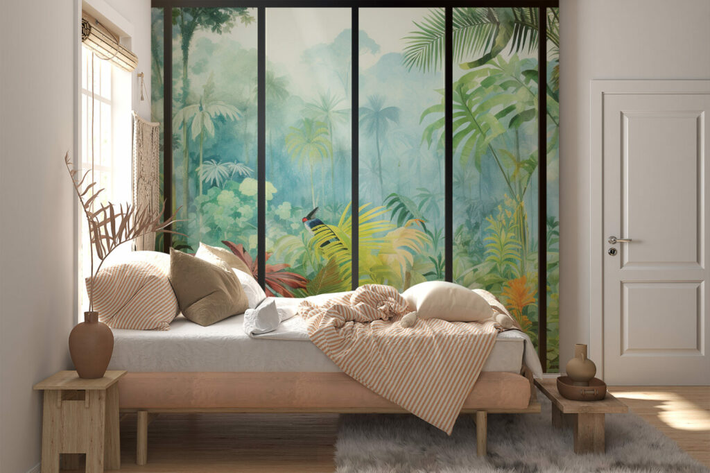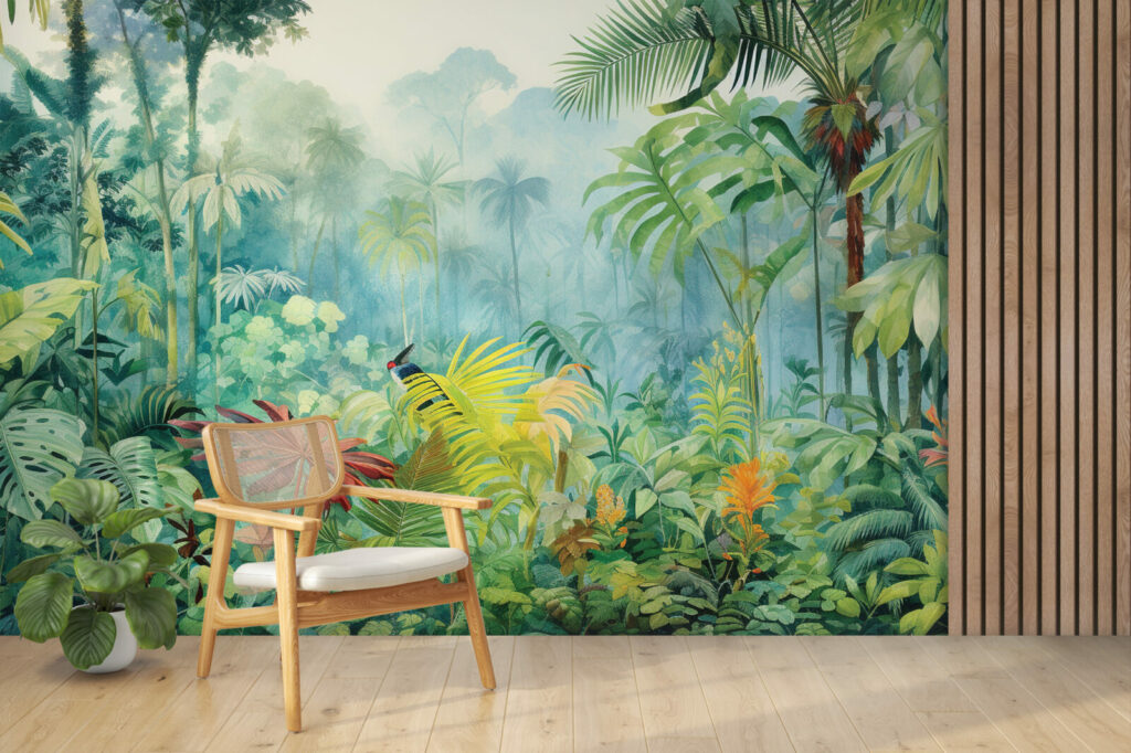 Ce papier peint forêt tropicale aquarelle donnera à n’importe quelle pièce de votre maison une sensation rafraîchissante et confortable lorsque vous la traverserez. Découvrez comment ce papier peint enveloppe un espace avec son design élégant sur le thème de la nature. En le regardant, vous avez l’impression d’être perdu dans une forêt captivant. Ce papier peint forêt tropicale est parfait pour ceux qui veulent transformer leur salon, salle familiale, chambre à coucher, couloir et bureau en un look confortable et douillet. Le papier peint tropical se distingue dans n’importe quel intérieur de maison. En grandissant, nous avons tendance à apprécier davantage la nature, car elle symbolise la vie et constitue également un endroit idéal pour respirer. Le papier peint forêt tropicale apporte cet endroit à l’intérieur de votre maison, non seulement il se démarque, mais sa présence tend également à calmer une aura stressante. Imaginez que vous soyez assis à l’autre bout de la pièce et que le papier peint forêt tropicale vous accompagne loin de la vie trépidante et stressante qui règne à l’extérieur de votre maison. Les décorateurs d’intérieur adorent placer des décors et même des papiers peints sur le thème de la nature dans un espace, car ils renouvellent l’ambiance d’un lieu.