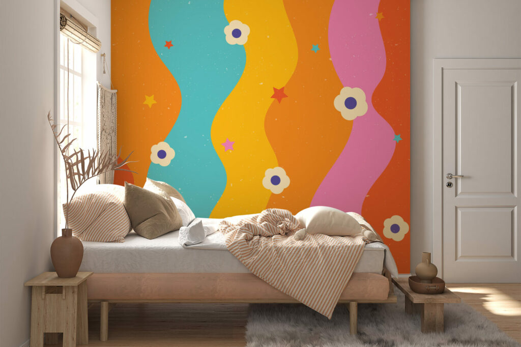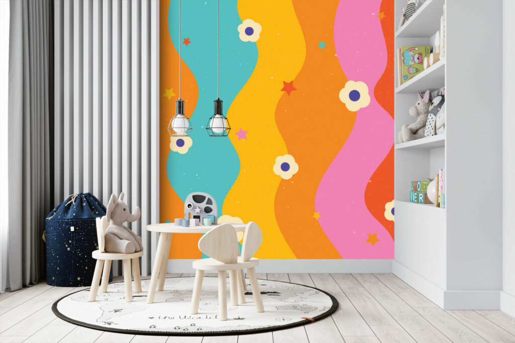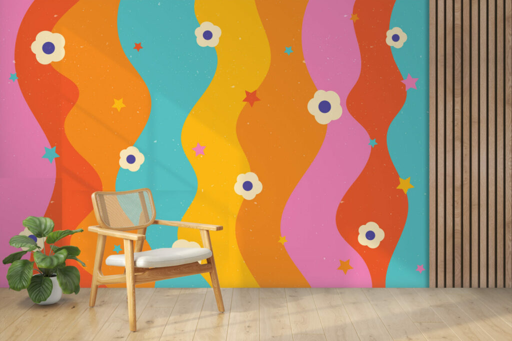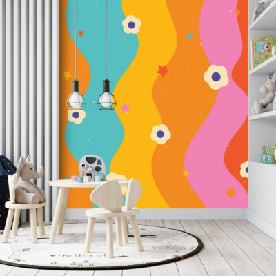 Plongez dans un univers rétro coloré mais résolument tendance avec notre papier peint arc en ciel vintage. Inspiré de l’esthétique pop des années 70, ce motif dévoile des ondes aux formes audacieuses et couleurs éclatantes. Apportez une touche de dynamisme et d’originalité à votre espace avec ce design qui marie à la perfection l’ancien et le moderne.