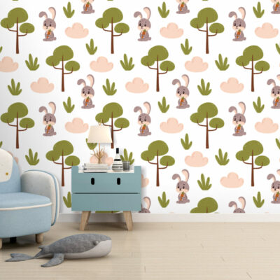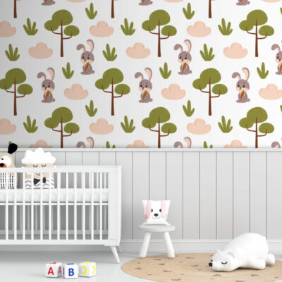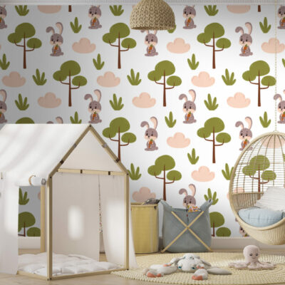 Optez pour ce papier peint aux motifs de lapins et de nature, conçu pour éveiller et apaiser, tout en apportant une touche d’élégance naturelle à l’espace. Un choix parfait pour les parents soucieux d’offrir à leurs enfants un environnement, créatif et de haute qualité sûre, tout en bénéficiant d’un savoir-faire artisanal.
