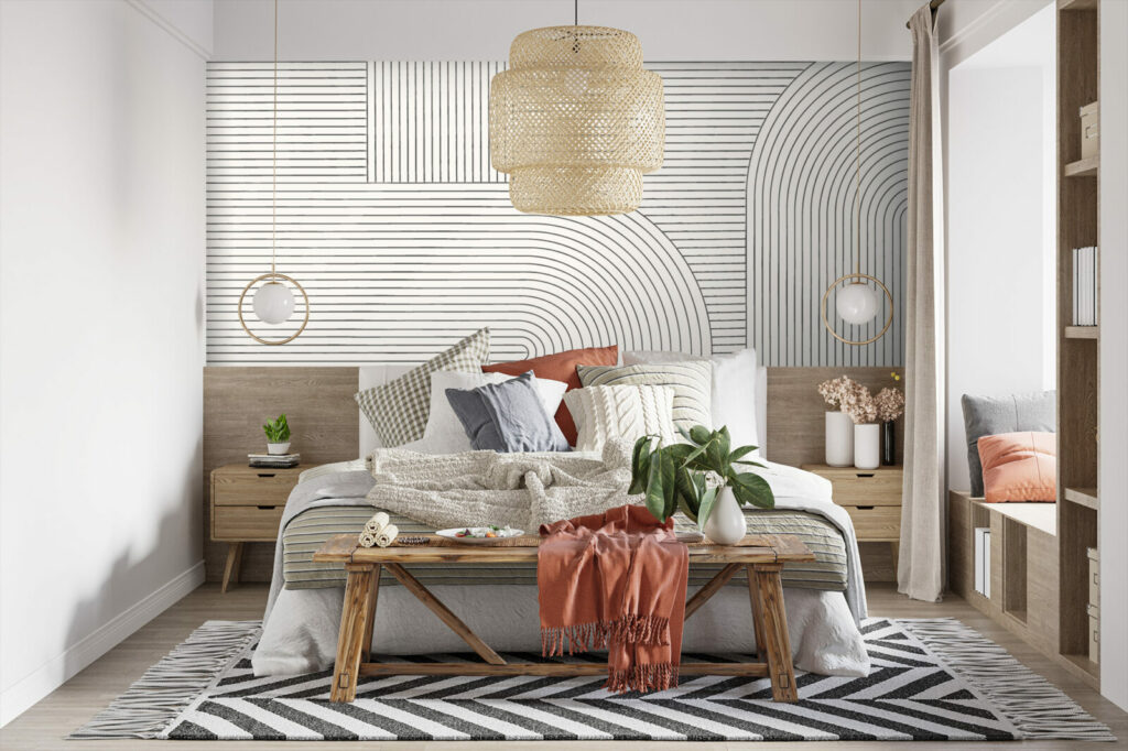 Le style boho minimaliste est parfait pour ceux qui recherchent une décoration subtile et raffinée, où chaque détail compte. Les arches fines apportent une touche moderne tout en rappelant les courbes naturelles et les formes simples qui définissent ce style. Ce papier peint boho minimaliste est idéal pour toutes les pièces de la maison, qu’il s’agisse d’un salon, d’une chambre ou d’un bureau, ajoutant une élégance discrète et intemporelle à votre décor.