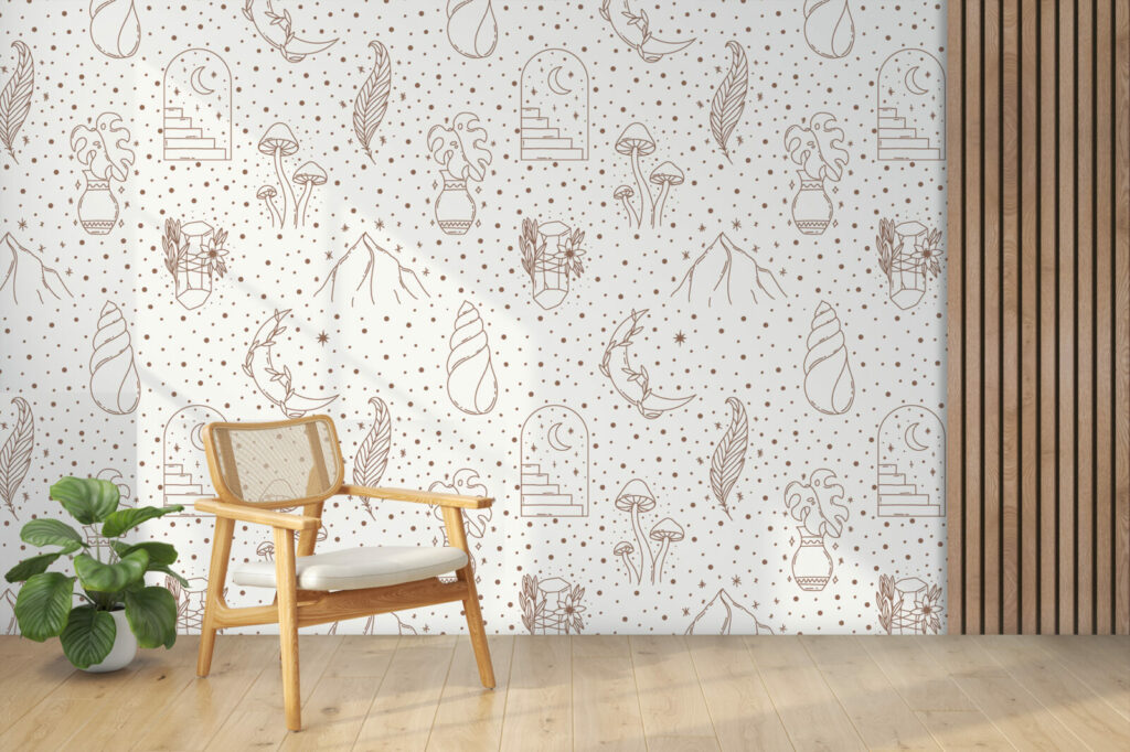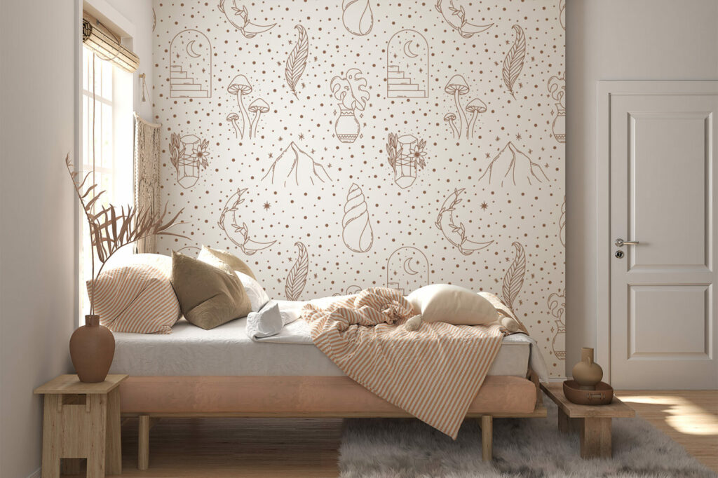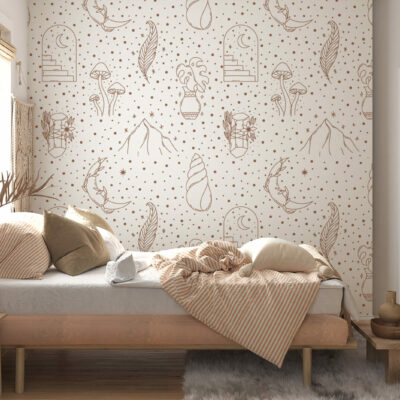Le design minimaliste et sophistiqué de se papier peint boho mystique apporte du charme à la pièce. Ses lignes fines et douces complèteront parfaitement un coin lecture ou un espace détente au style bohème minimaliste. Si l’été demeure votre saison favorite, redonnez vie à votre espace avec une décoration inspirée de la mer, vous serez enchantés par notre décor personnalisé Bajja!
