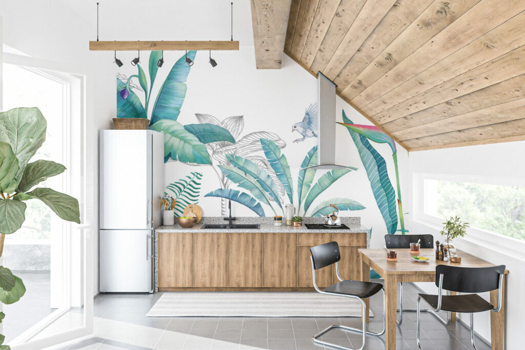 papier peint panoramique motifs japandi scandiboho végétal noir & blanc enfants géométrique vintage paysage wallpaper décoration murale décoration intérieur mobil-home