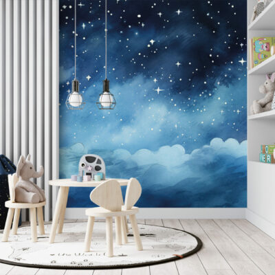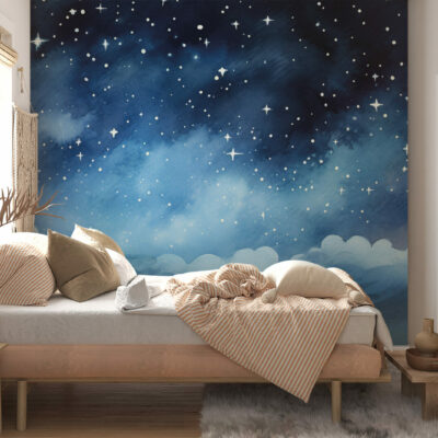 Admirer la beauté de l’univers est certainement l’une des activités les plus relaxantes dont vous puissiez profiter et le papier peint ciel nocturne vous permet de le faire dans le confort de votre maison. Avec un ciel d’un bleu profond rempli d’étoiles brillantes, ce modèle a été créé avec une telle attention qu’il ressemble à une illustration. Une solution décorative idéale qui apporte magie et charme à la chambre, à la salle à manger ou au bureau.