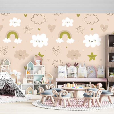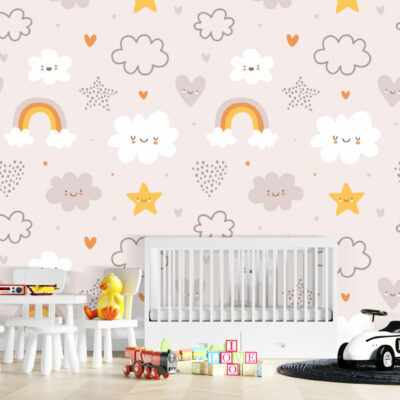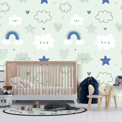 Ajoutez une touche de gaieté avec le papier peint cloudy dans la chambre à coucher de bébé ou à une chambre d’enfant ! Ce superbe papier peint panoramique capture la beauté d’un ciel rempli de nuages, d’étoiles et d’arcs-en-ciel, dans des colories très doux. Accrochez ce papier peint panoramique sur votre mur et profitez de la finition mate qui transformera l’aspect et l’ambiance de votre espace ! Parfait pour la chambre de vos enfants, cette œuvre d’art aux couleurs pastel les transportera dans un monde d’imagination et d’amusement.