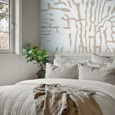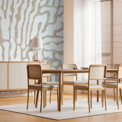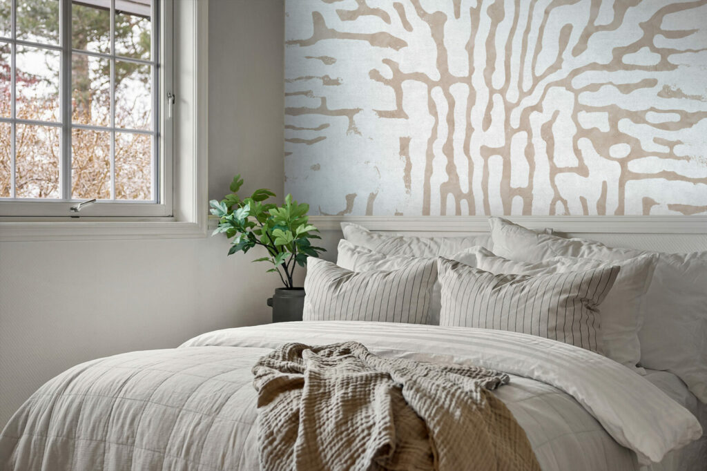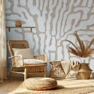 Ce papier peint évoque les fonds marins avec leurs coraux sur fond beige.