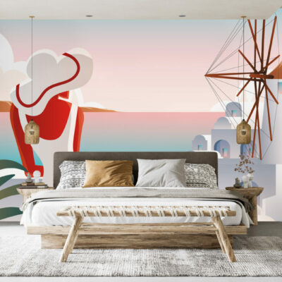Faites entrer la Grèce dans vos intérieurs avec le Papier Peint Cyclades #3. Grâce à la palette de teintes utilisées, cette décoration murale à thème Grèce ajoutera une sensation de fraîcheur et d’originalité à vos espaces, et ajoutera aussi de la profondeur et une sensation de hauteur. Pour le style méditerranéenne, essayez ce papier peint grec dans la salle de bain, la cuisine ou la chambre et combinez-le avec des meubles minimalistes et des rideaux légers.