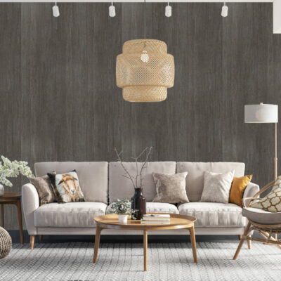 Donnez du cachet à votre intérieur avec ce papier peint Dark wood imitation bois en gris anthracite. Le modèle Dark wood a été créé en brûlant légèrement des morceaux de bois et en capturant les textures brutes et les détails les plus fins. Le résultat est une touche de nature sombre et chaleureuse qui s’intègre parfaitement dans une chambre minimaliste ou une cuisine d’inspiration scandinave. Associez le à du mobilier en bois clair pour résultat chic et tendance.