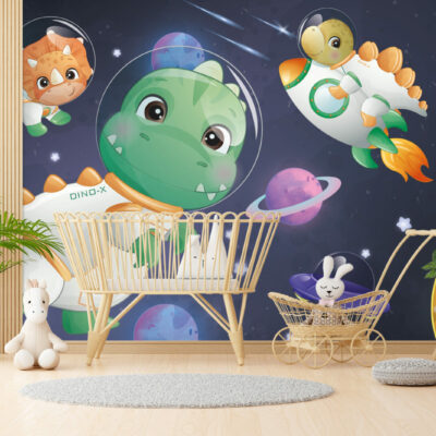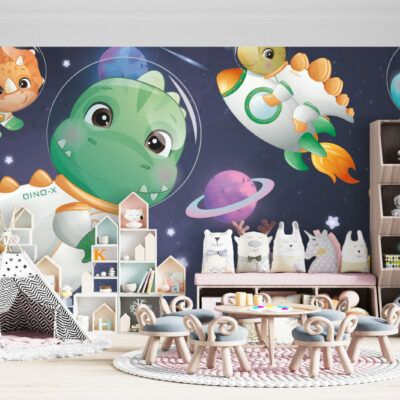 vente papier peint panoramique autocollant paysage espace dinosaure fusée sur-mesure haut de gamme chambre enfant bébé garçon