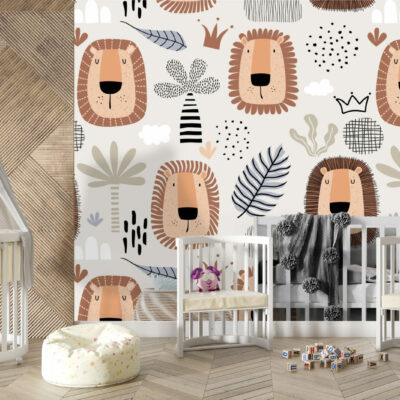 Papier peint enfant motif lion