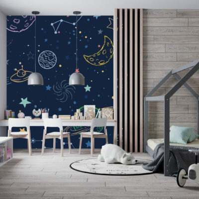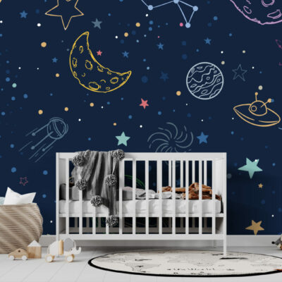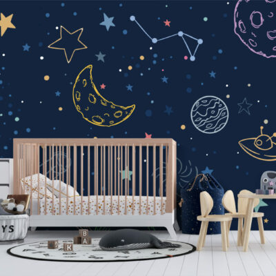 décoration murale adhésive original motif de l'espace sur-mesure livraison gratuite préfabriqué nouveau né