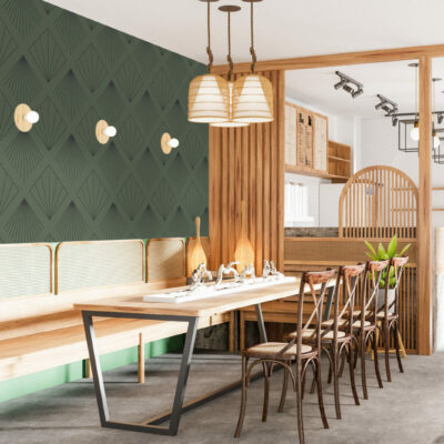 Le papier peint Fan sur mesure convient parfaitement à toutes les pièces de votre maison. Le ton sur ton et son motif unique lui confère un aspect sobre qui mettra l’accent sur n’importe quelle pièce. Que vous cherchiez un mur pour donner de la personnalité à la chambre de vos enfants ou que vous souhaitiez ajouter une touche d’élégance à votre cuisine, salle à manger, salon, tout espace de vie, le papier peint fan est le choix idéal.