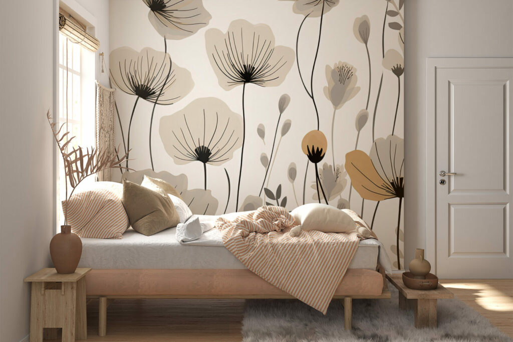 Cette fresque murale floral inspiration composée de fleurs beiges apportera une ambiance douce et relaxante à votre pièce. Le design de ce papier peint fleurs beige est très tendance, ce qui en fait un choix parfait pour les amateurs de décoration moderne. Ce papier peint floral inspiration intemporel est une tendance déco contemporaine, transformant votre maison en un véritable cocon douillet et accueillant.
