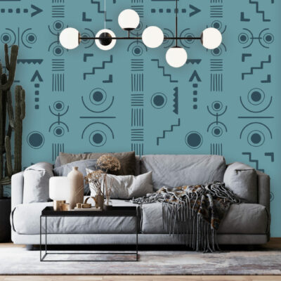 décoration murale motif ethnique moins chez wellpaper salon - bleu